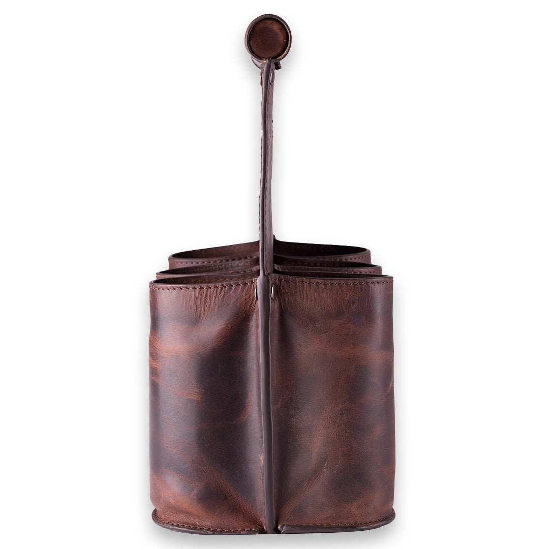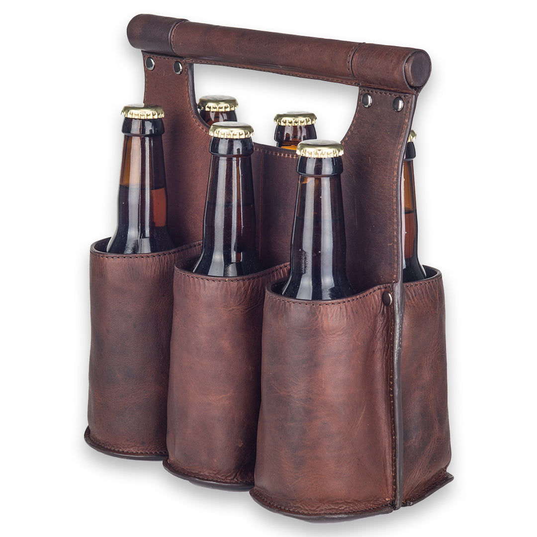Ölväska i brunt skinn – perfekt för sex flaskor